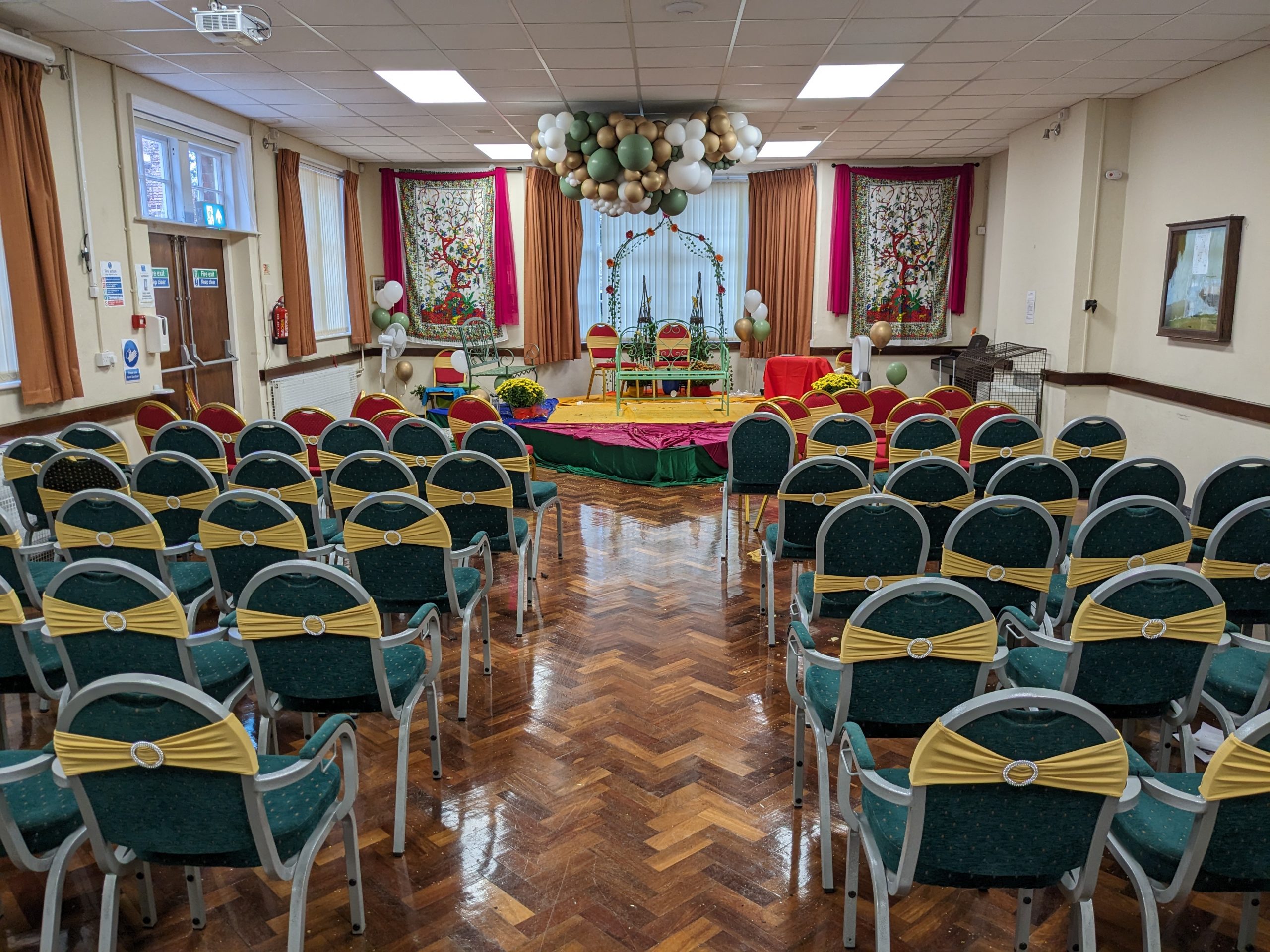 The Main Hall - capacity 100 standing or 80 seated - £15/hour Includes: tables & chairs (which are stored in corner of room if not in use), projector screen/av equipment, kitchen for food storage & making hot drinks, DIY bar area, free WiFi, free parking (users staying for 2 hours or more must register on terminal). Available 7 days/week 9am-11pm. Optional Add-ons: Kitchen Oven for Cooking: £6/hour (use of kitchen for drinks is included; it is just the oven you need to pay extra for)